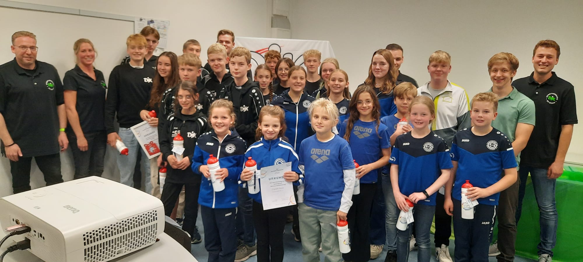 Unsere Mannschaft der Wettkampfschwimmer gewann den DJK Nachwuchspreis und wurden letztes Wochenende in Essen geehrt. (DJK ist der katholische Sportverband in Deutschland)