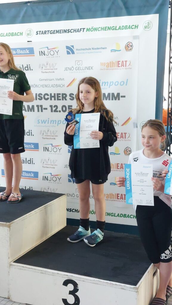 Am 11.-12.05. fand der NRW Schwimm-Mehrkampf der Jahrgänge 2012-14 in Mönchengladbach statt. Startberechtigt waren pro Jahrgang des Mehrkampfes nach Bestenliste des SV NRW die besten 40 Sportler über 200m Lagen auf der 25m- oder 50m Bahn ihres Jahrgangs.